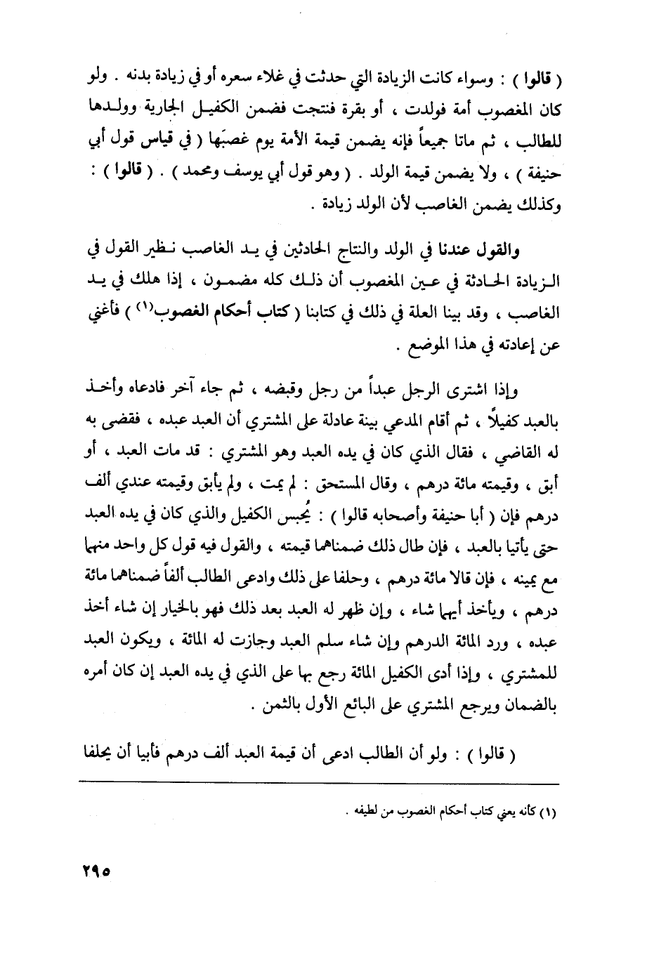 1 كأنه يعني كتاب أحكام الغصوب من لطيفة.