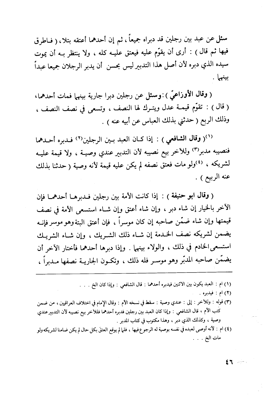 1 أم: العبد يكون بين الإثنين فيدبره أحدهما: قال الشافعي: وإذا كان الخ.
