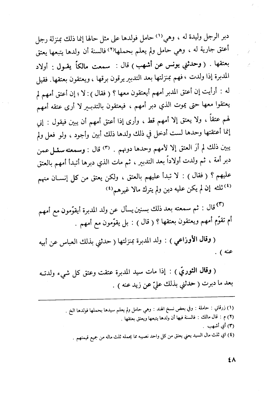 وقال الأوزاعي ولد المدبرة بمنزلتها "حدثني بذلك العباس عن أبيه عنه".