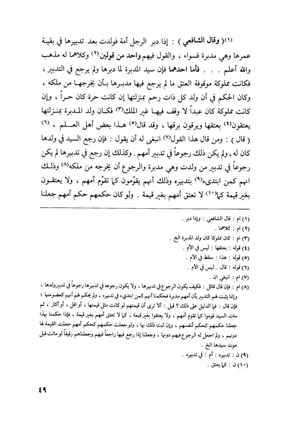 8 أم: فإن قال قائل فكيف يكون الرجوع في تدبيرها ولا يكون رجوعه في تدبيرها رجوعا في تدبيرولدها وإنما يثبت لهم التدبير بأن أمهم