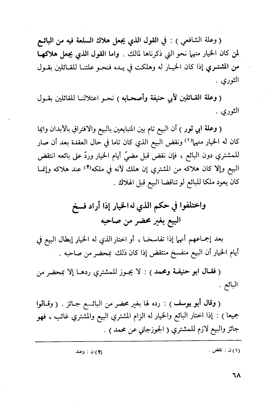 بعد إجماعهم أنهما إذا تفاسخا أو اختار الذي له الخيار إبطال البيع في أيام الخيار أن البيع منفسخ منتقض إذا كان ذلك بمحضر من صاحبه.