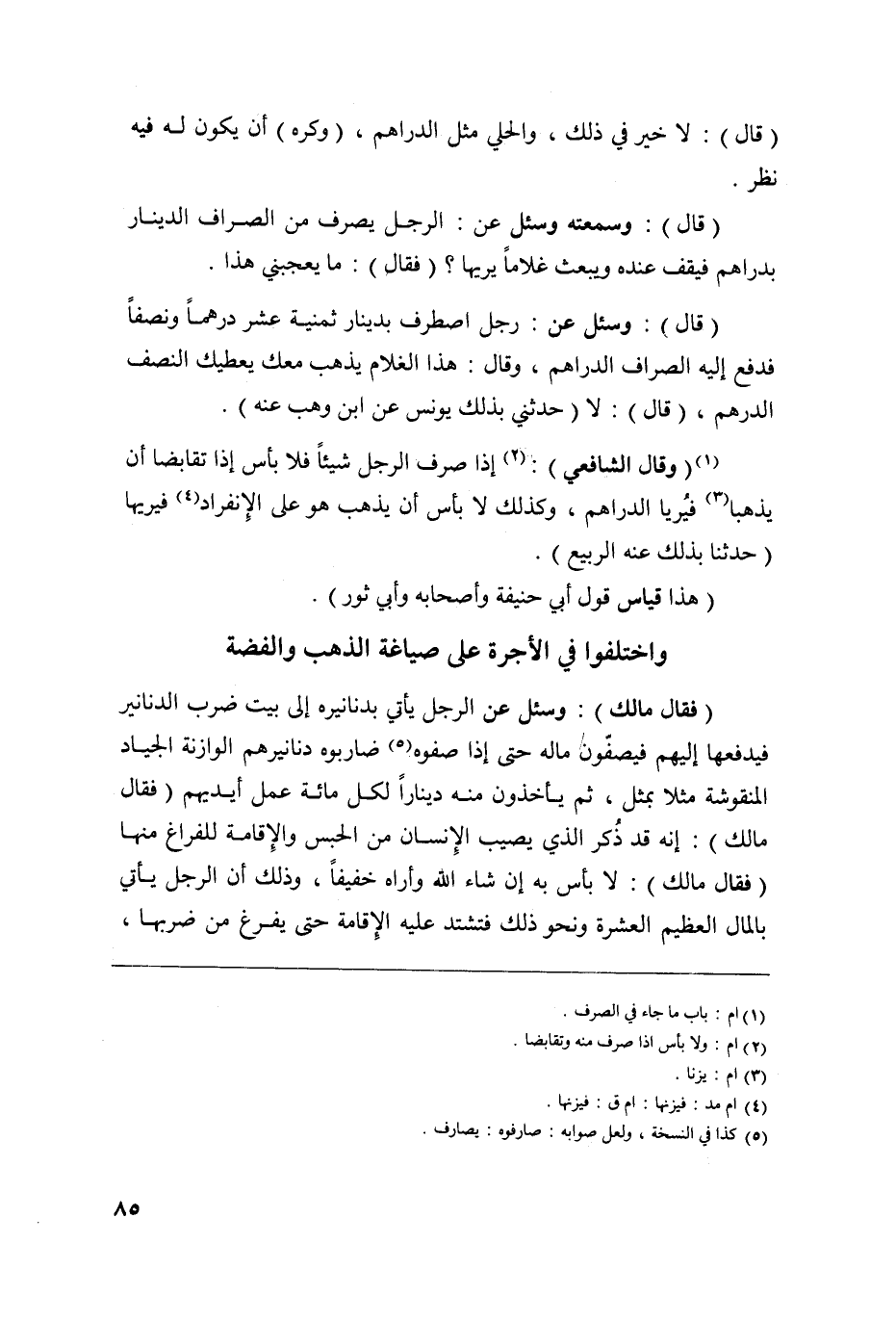 1وقال الشافعي:2 إذا صرف الرجل شيئا فلا بأس إذا تقابضا أن يذهبا3 فيريا الدراهم وكذلك لا بأس أن يذهب هو على الإنفراد4 فيريها "حدثنا بذلك عنه الربيع".