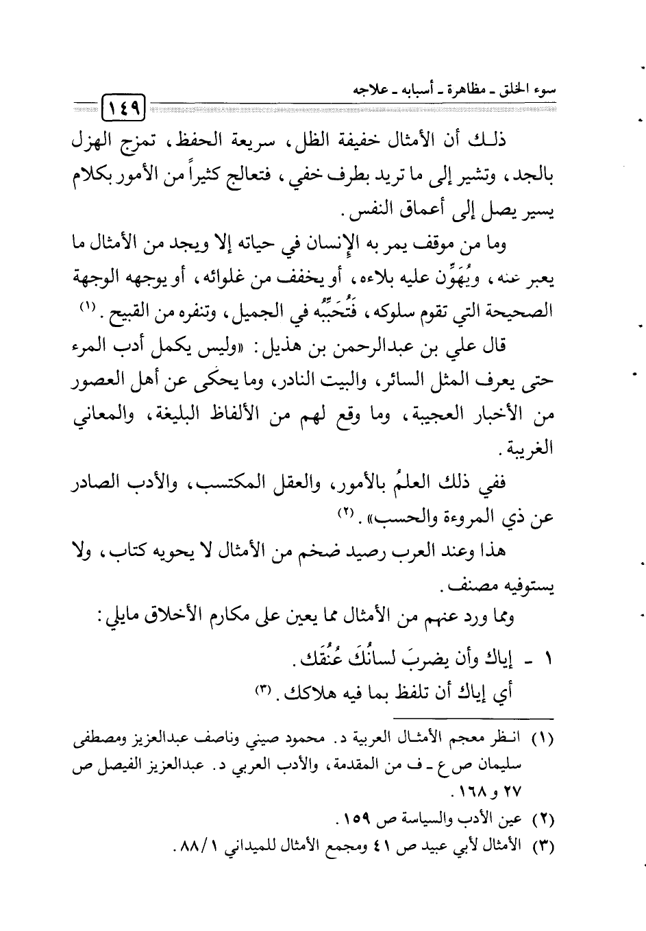 1 انظر: معجم الأمثال العربية د. محمود صيني، وناصف عبد العزيز ومصطفى سليمان، ص ع ـ ف من المقدمة، والأدب العربي د. عبد العزيز الفيصل، ص 27و 168.