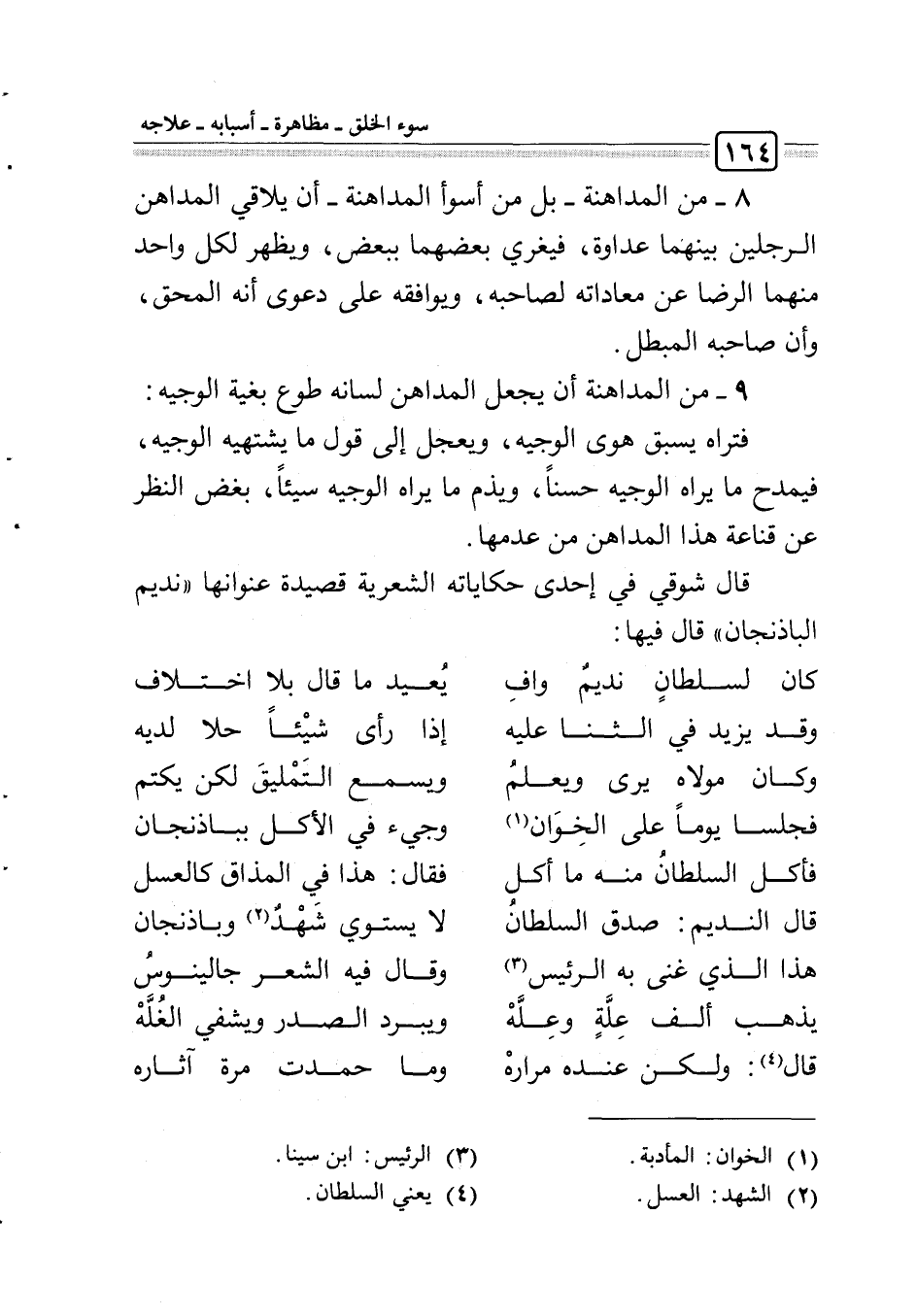 8ـ من المداهنة ـ بل من أسوأ المداهنة ـ أن يلاقي المداهن الرجلين بينهما عداوة، فيغري بعضهما ببعض، ويظهر لكل واحد منها الرضا عن معاداته لصاحبه، ويوافقه على دعوى أنه المحق، وأن صاحبه المبطل.