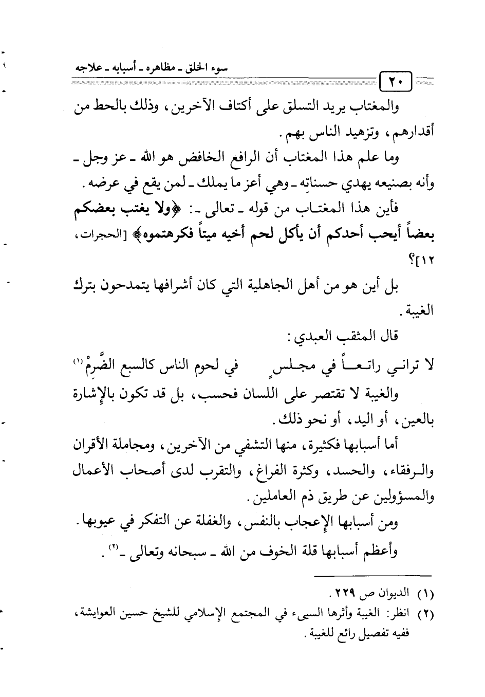 2 انظر: الغيبة وأثرها السيء في المجتمع الإسلامي للشيخ حسين العوايشة، ففيه تفصيل رائع للغيبة.