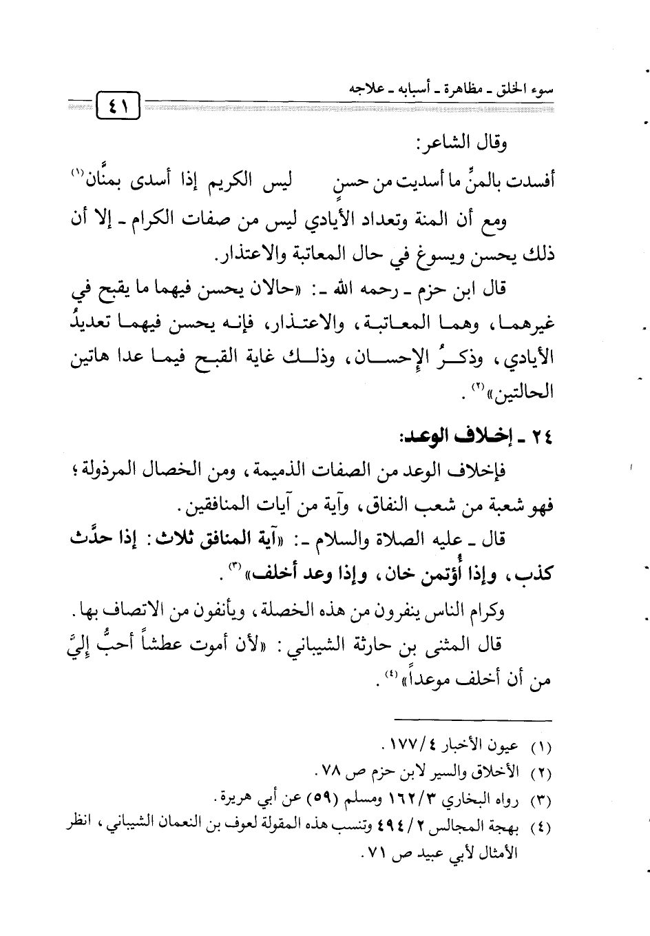 قال ـ عليه الصلاة والسلام ـ: "آية المنافق ثلاث: إذا حدث كذب، وإذا أؤتمن خان، وإذا وعد أخلف" 3.