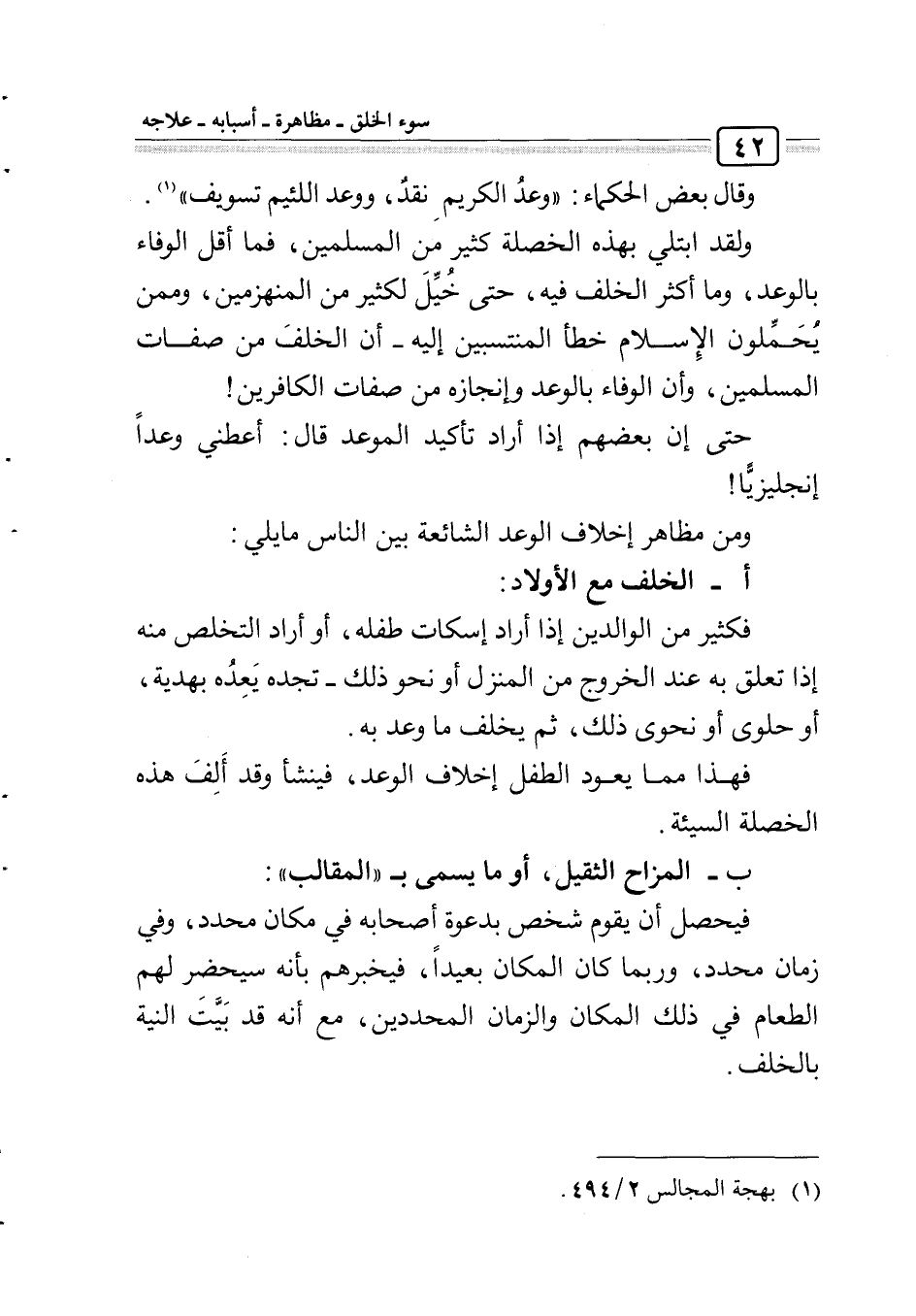 فهذا مما يعود الطفل إخلاف الوعد، فينشأ وقد ألف هذه الخصلة السيئة.