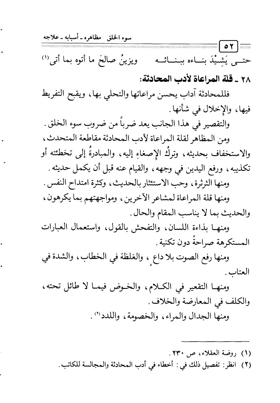2 انظر: تفصيل ذلك في: أخطاء أدب المحادثة والمجالسة للكاتب.