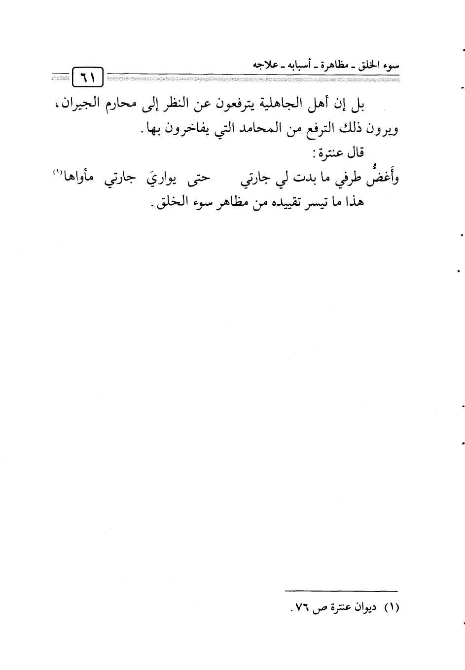 بل إن أهل الجاهلية يترفعون عن النظر إلى محارم الجيران، ويرون ذلك الترفع من المحامد التي يفاخرون بها.