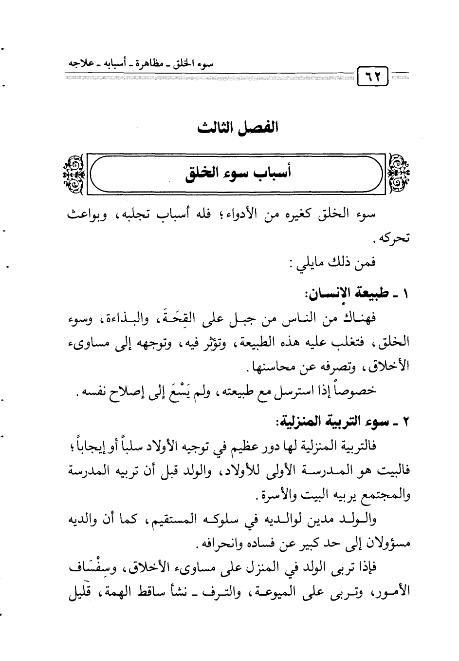 سوء الخلق كغيره من الأدواء؛ فله أسباب تجلبه، وبواعث تحركه.
