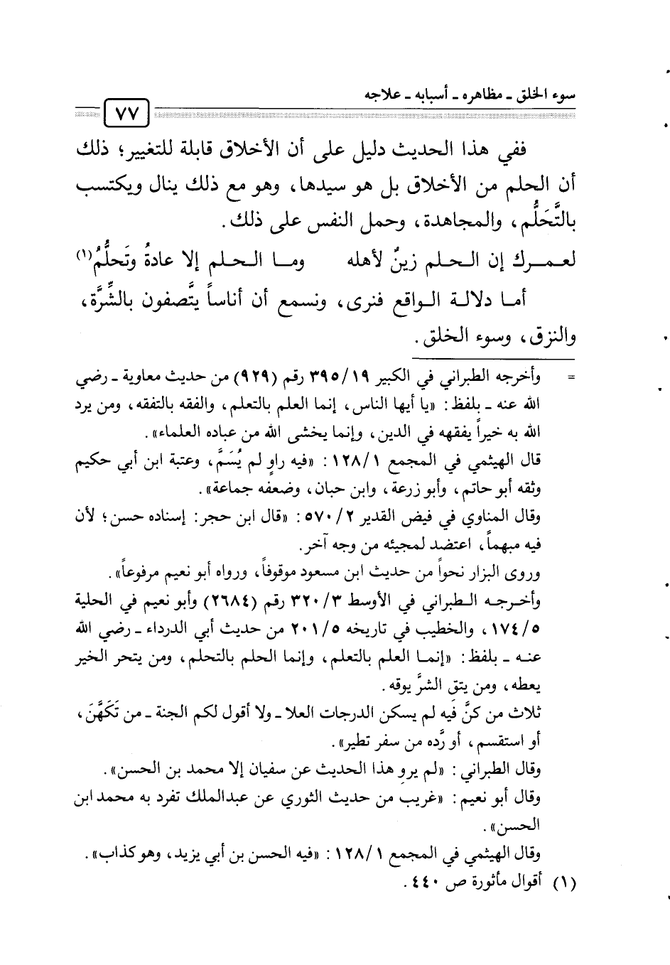 ففي هذا الحديث دليل على أن الأخلاق قابلة للتغيير؛ ذلك أن الحلم من الأخلاق بل هو سيدها، وهو مع ذلك ينال ويكتسب بالتحلم، والمجاهدة، وحمل النفس على ذلك.
