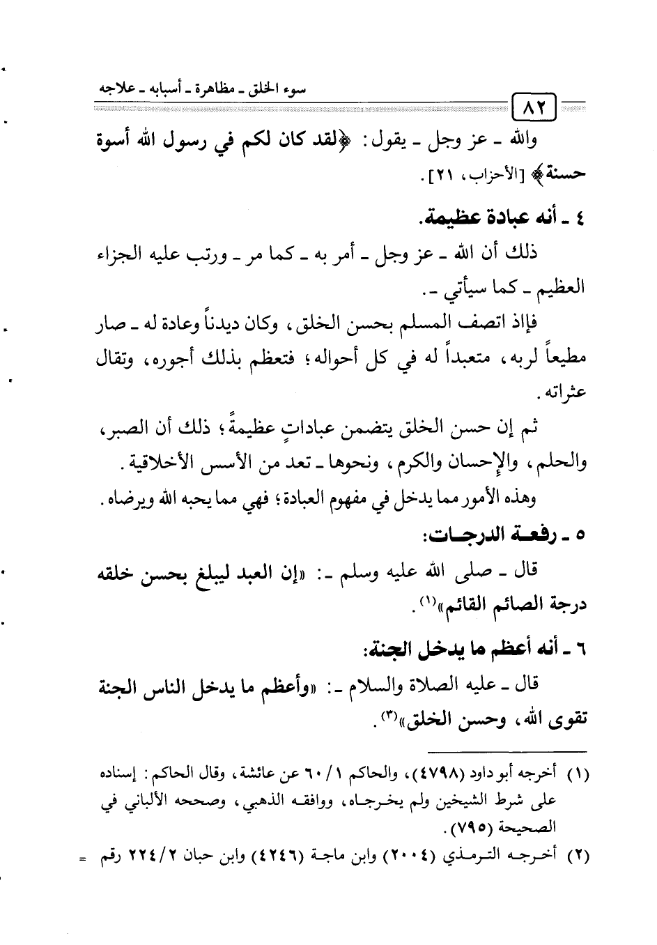 قال ـ صلى الله عليه وسلم ـ:"إن العبد ليبلغ بحسن خلقه درجة الصائم القائم" 1.