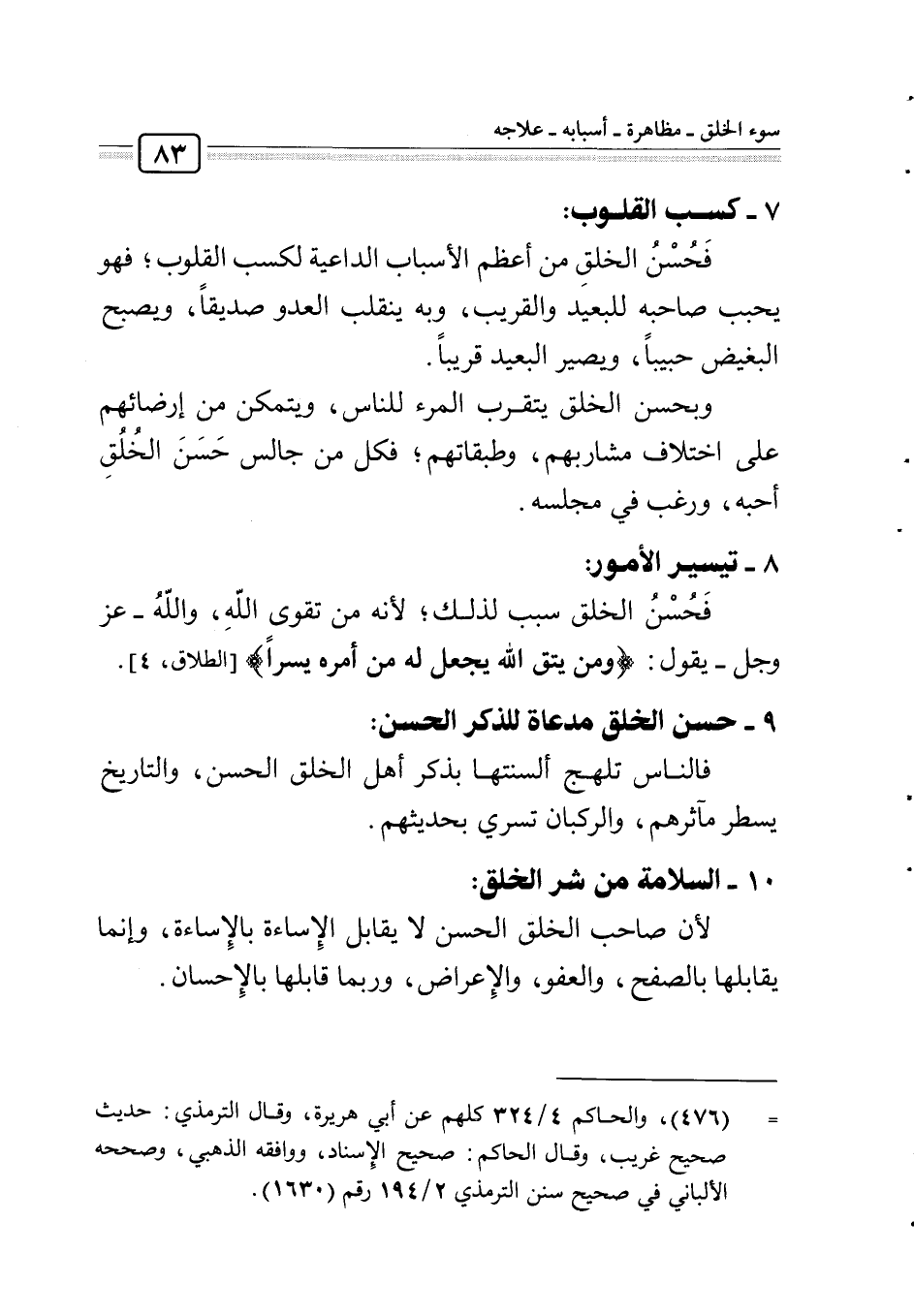 فحسن الخلق من أعظم الأسباب الداعية لكسب القلوب؛ فهو يحبب صاحبه للبعيد والقريب، وبه ينقلب العدو صديقا، ويصبح البغيض حبيبا، ويصير البعيد قريبا.