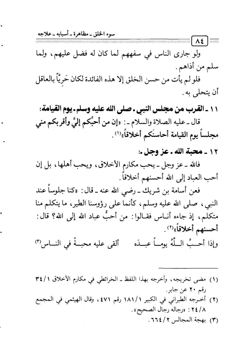 قال ـ عليه الصلاة والسلام: "إن من أحبكم إلي وأقربكم مني مجلسا يوم القيامة أحاسنكم أخلاقا" 1.