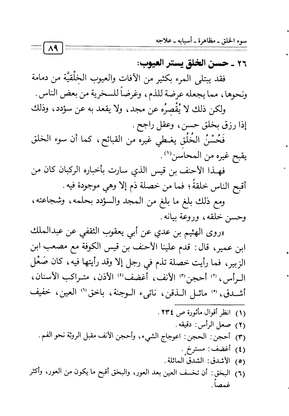 فهذا الأحنف بن قيس الذي سارت بأخباره الركبان كان من أقبح الناس خلقة؛ فما من خصلة ذم إلا وهي موجودة فيه.