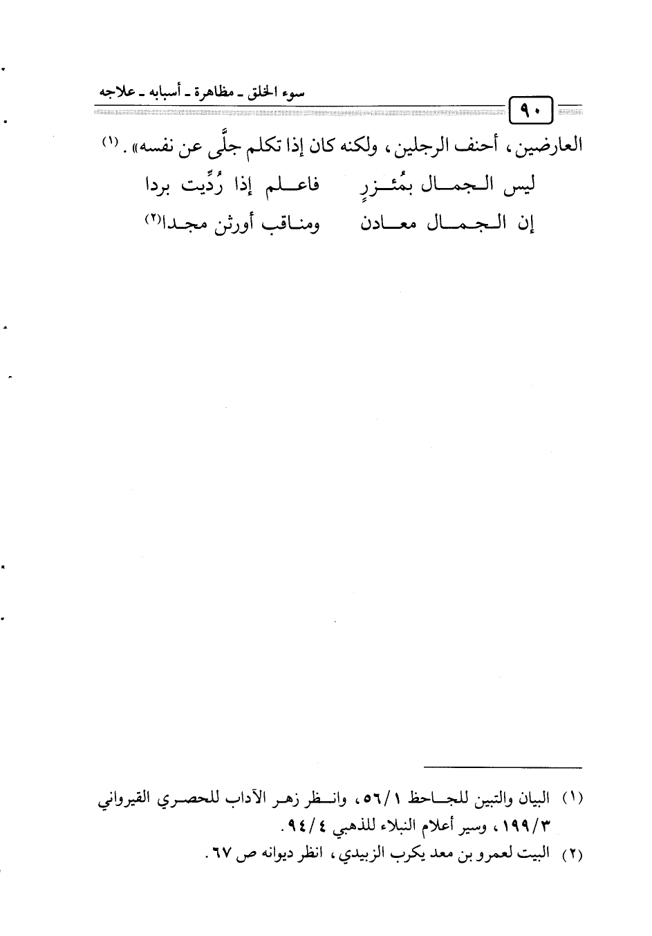 1 البيان والتبيين للجاحظ1/56، وانظر: زهر الأدب للحصري القيرواني3/199، وسير أعلام النبلاء للذهبي4/94
