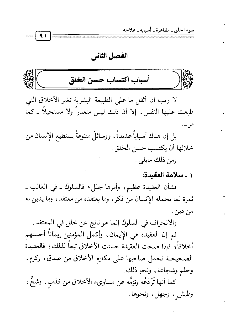الفصل الثاني: أسباب اكتساب حسن الخلق