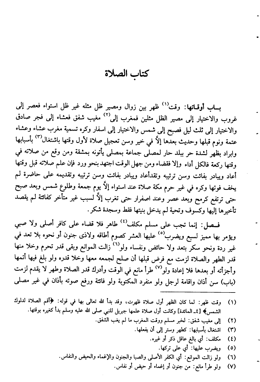 باب أوقاتها: وقت1 ظهر بين زوال ومصير ظل الشيء مثله غير ظل استواء العصر إلى غروب والاختيار إلى مصير الظل مثلين فمغرب إلى2 مغيب شفق فعشاء إلى فجر صادق والاختيار إلى ثلث ليل فصبح إلى شمس والاختيار إلى إسفار وكره تسمية مغرب عشاء وعشاء عتمة ونوم قبلها وحديث بعدها إلا في خير وسن تعجيل صلاة لأول وقتها باشتغال3 بأسبابها وإبراد بظهر لشدة حر ببلد حار لمصلى جماعة بمصلى يأتونه بمشقة ومن وقع من صلاته في وقتها ركعة فالكل أداء وإلا فقضاء ومن جهل الوقت اجتهد بنحو ورد فإن علم صلاته قبل وقتها أعاد ويبادر بفائت وسن ترتيبه وتقديمه على حاضرة لم يخف فوتها وكره في غير حرم مكة صلاة عند استواء إلا يوم الجمعة وطلوع شمس وبعد صبح حتى ترتفع كرمح وعصر وعند اصفرار حتى تغرب إلا لسبب غير متأخر كفائتة لم يقصد تأخيرها إليها وكسوف وتحية لم يدخل بنيتها فقط وسجدة شكر.
