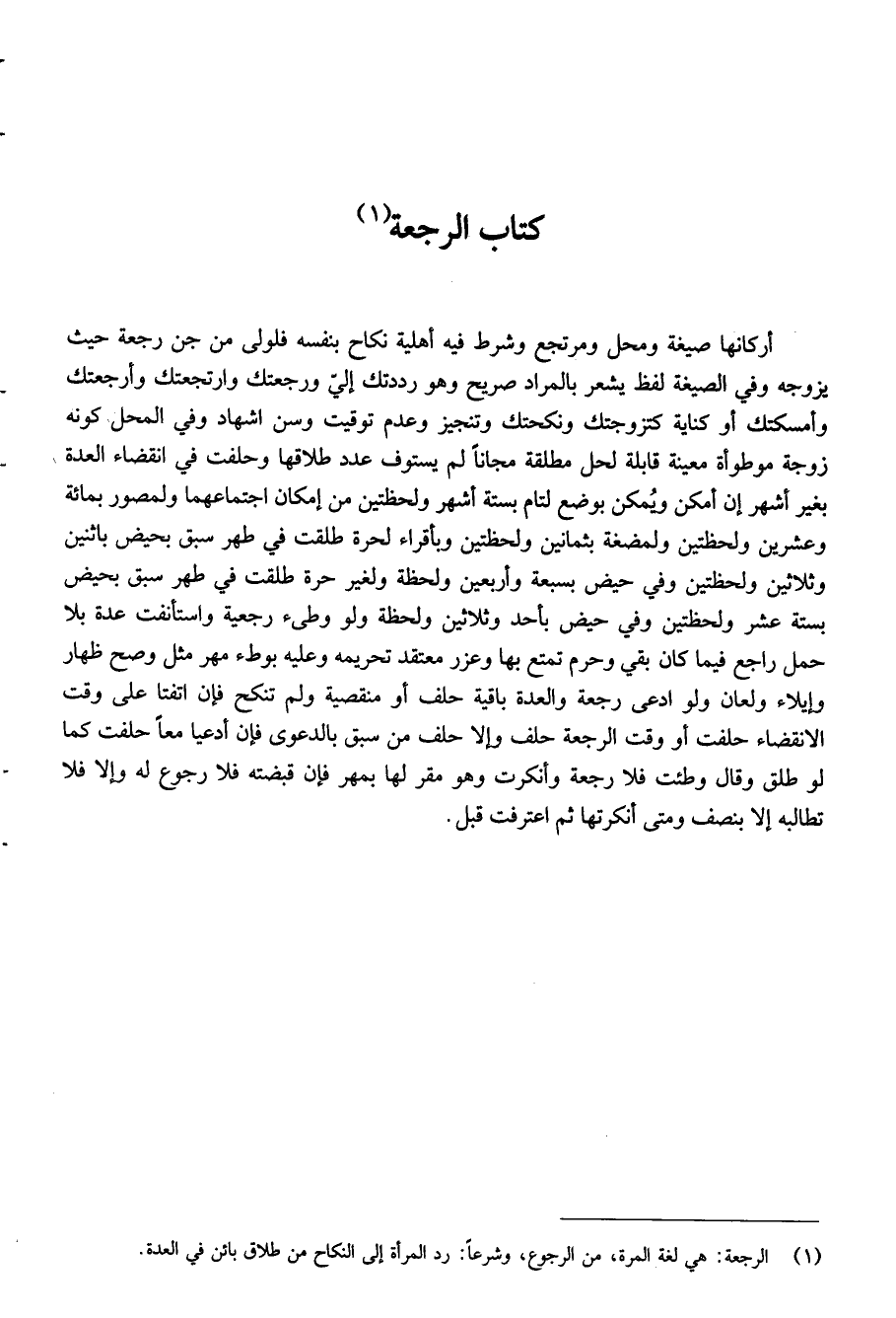 1 الرجعة هي لغة: المرة من الرجوع وشرعا: رد المرأة إلى النكاح من طلاق بائن في العدة.