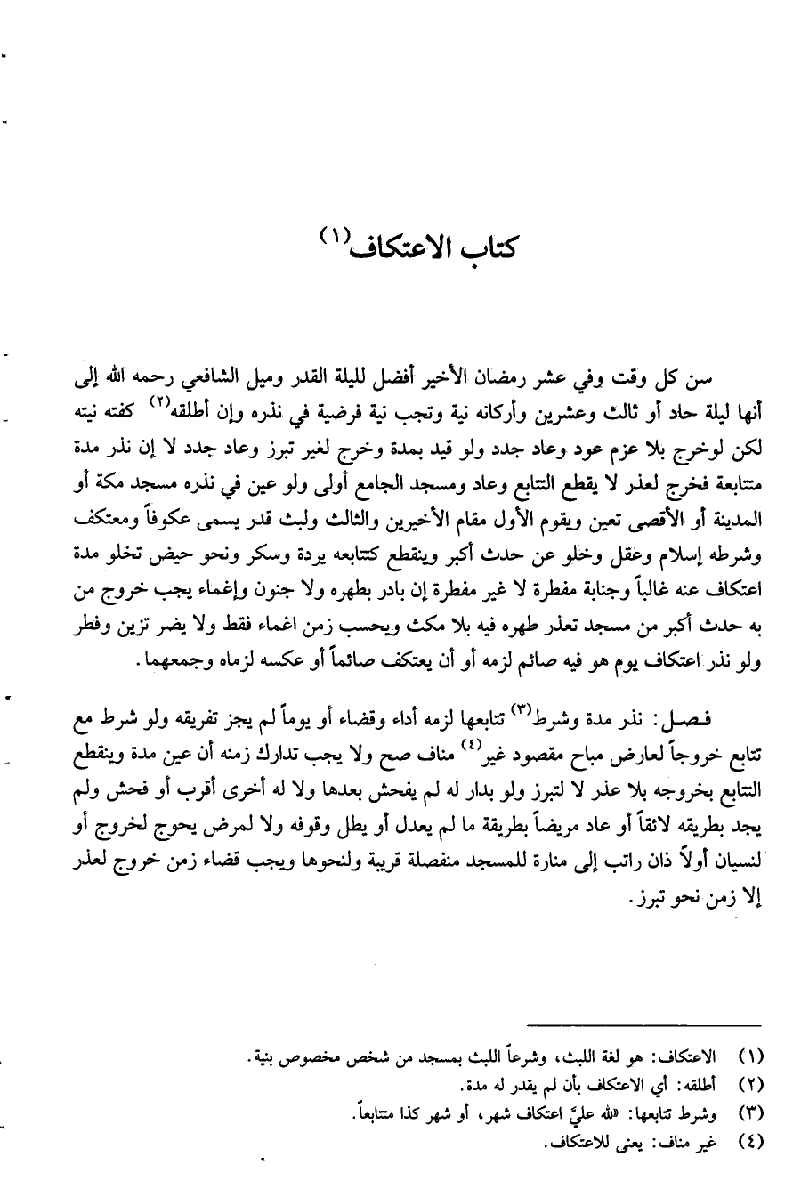 1 الاعتكاف: هو لغة اللبث وشرعا اللبث بمسجد من شخص مخصوص بنية.