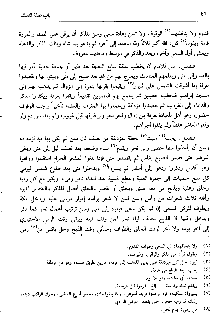 فصل: سن للإمام أن يخطب بمكة سابع الحجة بعد ظهر أو جمعة يأمر فيها بالغدو إلى منى ويعلمهم المناسك ويخرج بهم من غد بعد صبح إلى منى ويبيتوا بها ويقصدوا عرفة إذا أشرقت الشمس على ثبيرو3 ويقيموا بقربها بنمرة إلى الزوال ثم يذهب بهم إلى مسجد إبراهيم فيخطب خطبتين ثم يجمع بهم العصرين تقديما ويقفوا بعرفة ويكثروا الذكر والدعاء إلى الغروب ثم يقصدوا مزدلفة ويجمعوا بها المغرب والعشاء تأخيرا وواجب الوقوف حضوره وهو أهل للعبادة بعرفة بين زوال وفجر نحر ولو فارقها قبل غروب ولم يعد سن دم ولو وقفوا العاشر غلطا ولم يقلوا أجزأهم.