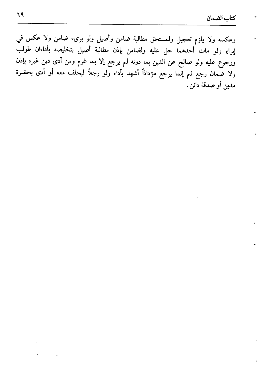 وعكسه ولا يلزم تعجيل ولمستحق مطالبة ضامن وأصيل ولو برئ برئ ضامن ولا عكس في إبراء ولو مات أحدهما حل عليه ولضامن بإذن مطالبة أصيل بتخليصه بأداء إن طولب ورجوع عليه ولو صالح عن الدين بما دونه لم يرجع إلا بما غرم ومن أدى دين غيره بإذن ولا ضمان رجع ثم إنما يرجع مؤد إذا أشهد بأداء ولو رجلا ليحلف معه أو أدى بحضرة مدين أو صدقة دائن.