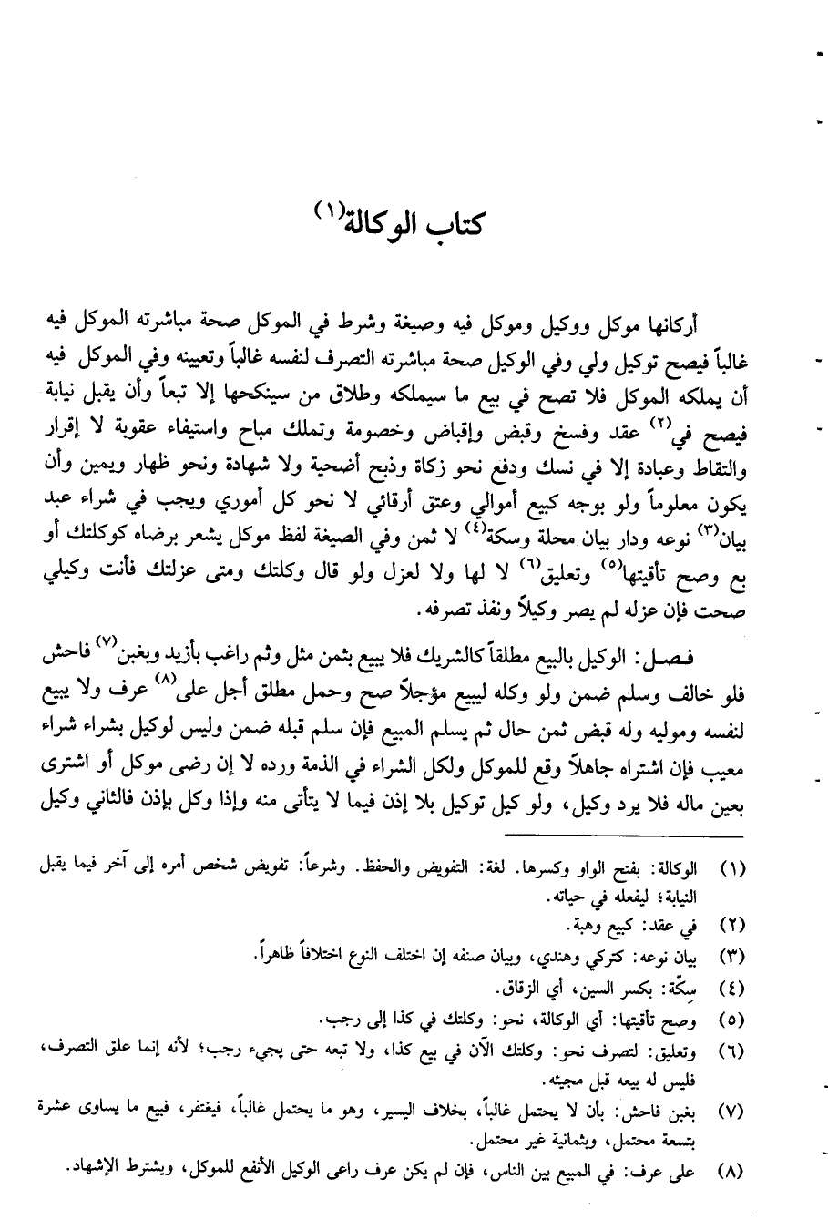8 على عرف: في المبيع بين الناس فإن لم يكن عرف راعي الوكيل الأنفع للموكل ويشترط الإشهاد.