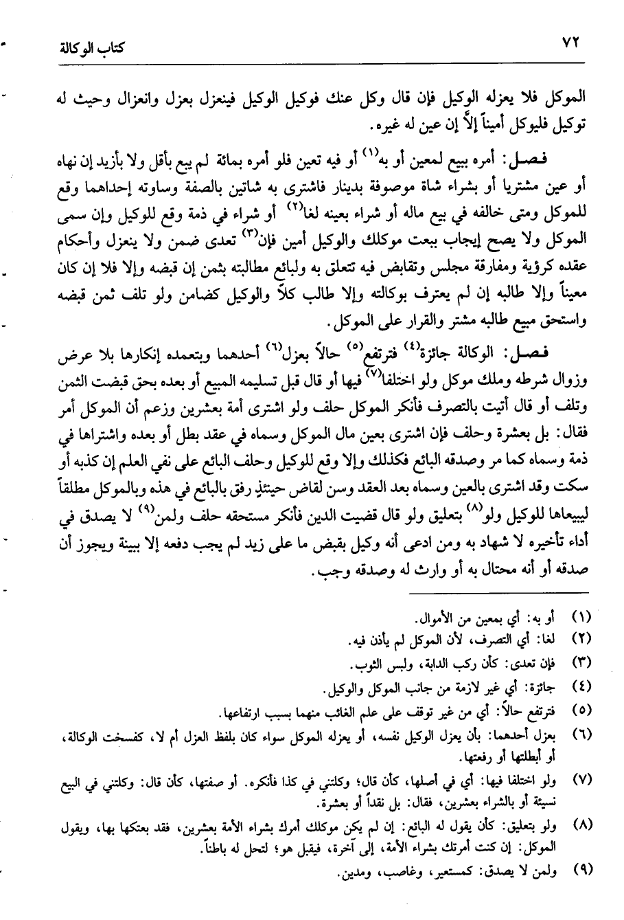 7 ولو اختلفا فيها: أي في أصلها كأن قال وكلتني في كذا فأنكره أو صفتها كأن قال: وكلتني في البيع نسيئة أو بالشراء بعشرين فقال: بل نقدا أو بعشرة.