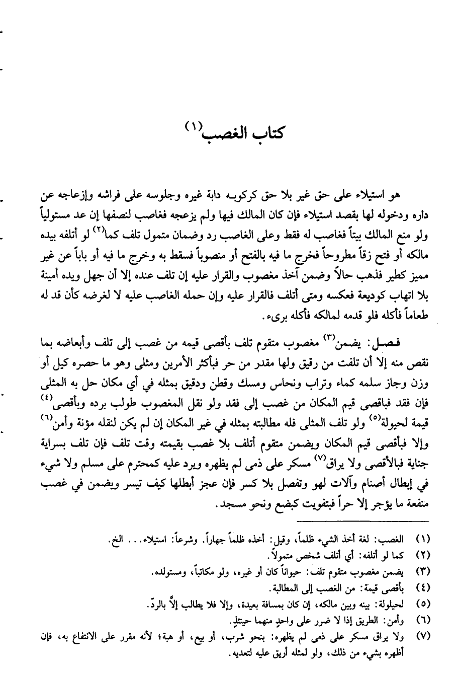 1 الغصب: لغة أخذ الشيء ظلما وقيل: أخذه جهارا وشرعا: استيلاء.....إلخ.