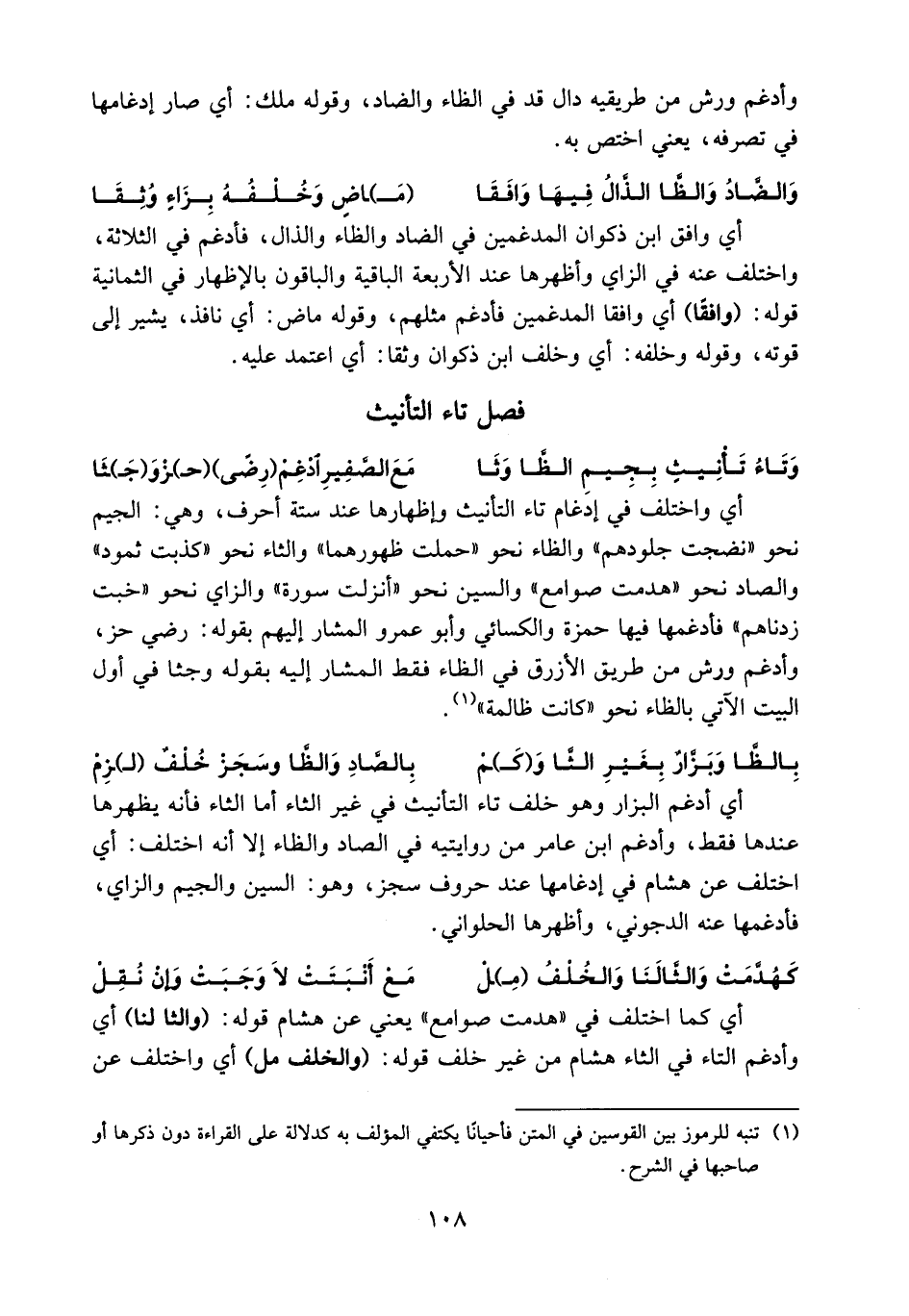 (¬1) تنبه للرموز بين القوسين في المتن فأحيانا يكتفي المؤلف به كدلالة على القراءة دون ذكرها أو صاحبها في الشرح.