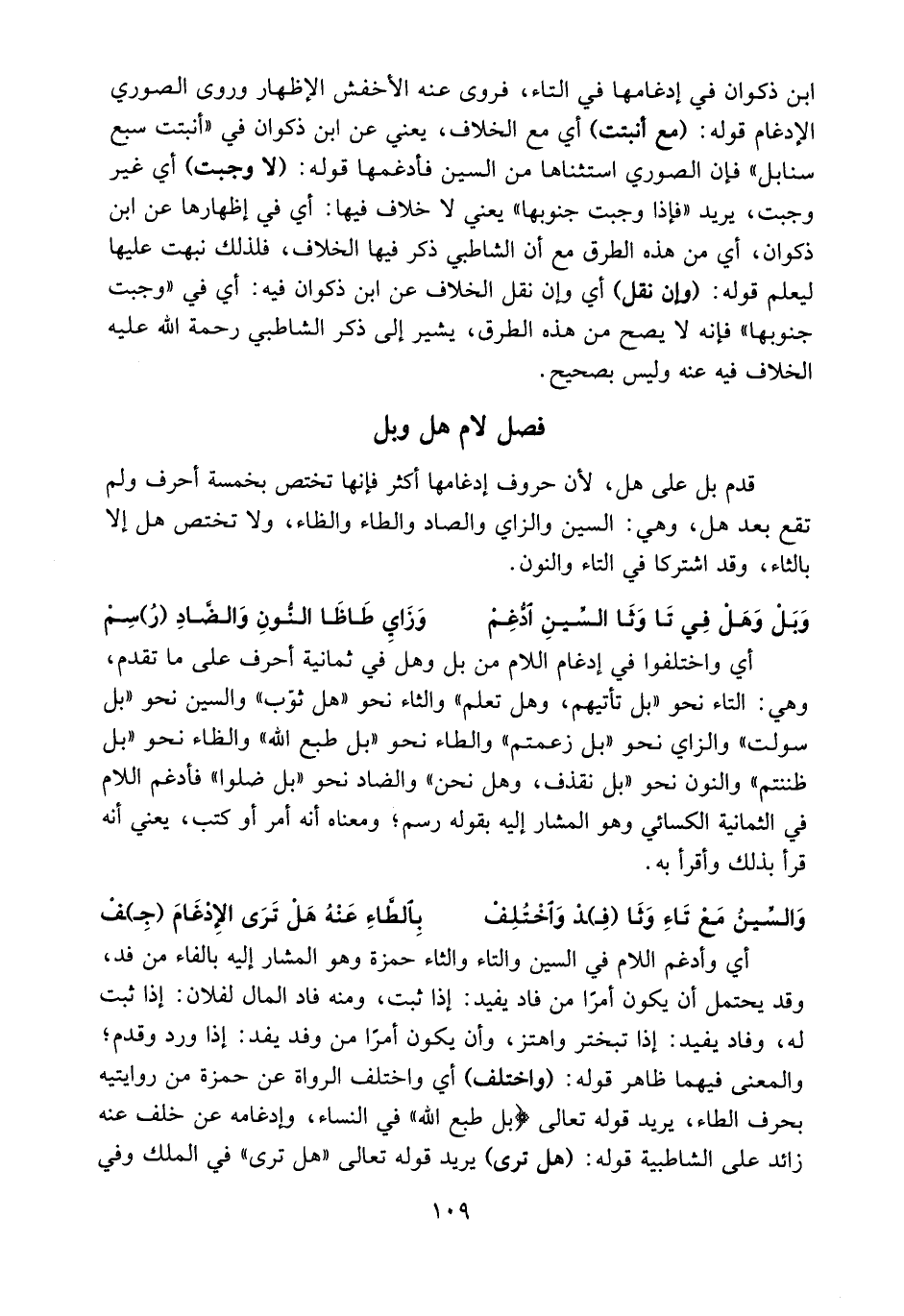 و؟؟ بل وهل في تا وثا السّين ادّغم ... وزاي طا ظا النّون والضّاد (ر) سم