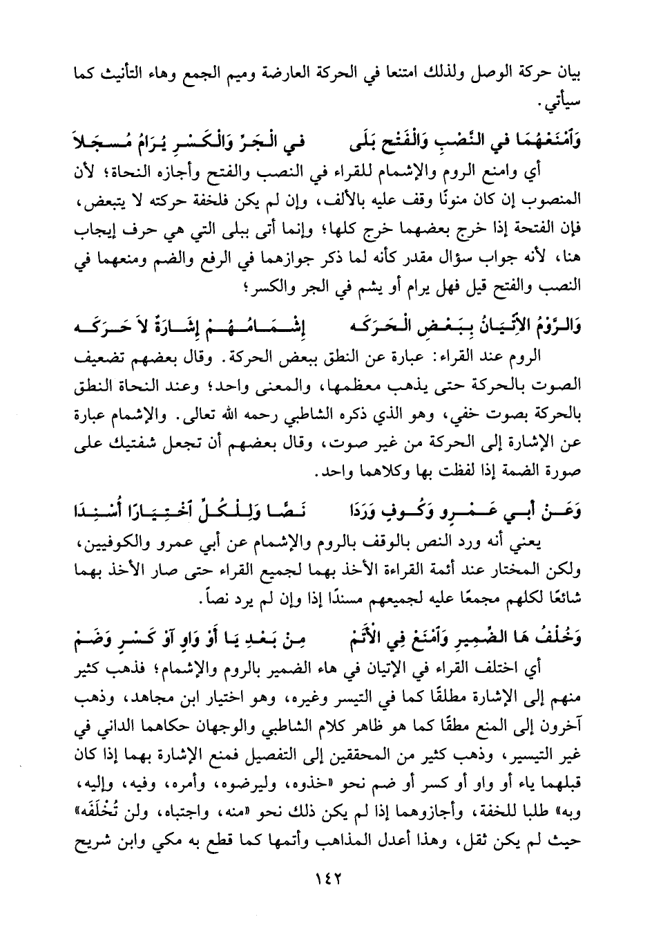 الروم عند القراء: عبارة عن النطق ببعض الحركة. وقال بعضهم تضعيف الصوت بالحركة حتى يذهب معظمها، والمعنى واحد؛ وعند النحاة النطق بالحركة بصوت خفي، وهو الذي ذكره الشاطبي رحمه الله تعالى. والإشمام عبارة عن الإشارة إلى الحركة من غير صوت، وقال بعضهم أن تجعل شفتيك على صورة الضمة إذا لفظت بها وكلاهما واحد.