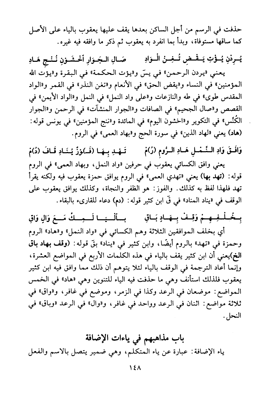 باب مذاهبهم في ياءات الإضافة