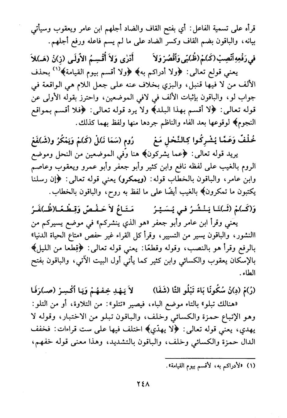 يعني وقرأ ابن عامر وأبو جعفر «هو الذي ينشركم» في موضع يسيركم من النشور، والباقون يسير من التسيير، وقرأ كل القراء غير حفص «متاع الحياة الدنيا» بالرفع وقرأ هو بالنصب، وقوله وقطعا: يعني قوله تعالى: قطعا من الليل بالإسكان يعقوب والكسائي وابن كثير كما يأتي أول البيت الآتي، والباقون بفتح الطاء.