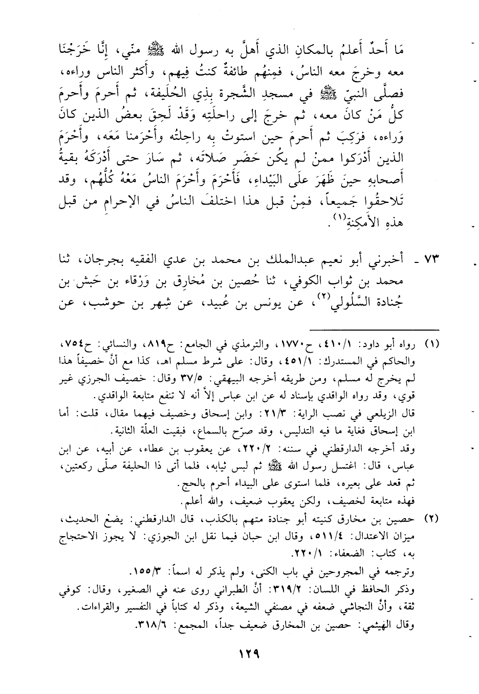 73- أخبرني أبو نعيم عبد الملك بن محمد بن عدي الفقيه بجرجان، ثنا محمد بن ثواب الكوفي، ثنا حصين بن مخارق بن ورقاء بن حبش بن جنادة السلولي، عن يونس بن عبيد، عن شهر بن حوشب، عن -[130]- أبي أمامة، عن النبي صلى الله عليه وسلم في قوله: {الحج أشهرٌ معلوماتٌ} ، قال: ((شوال وذو القعدة وذو الحجة)) .