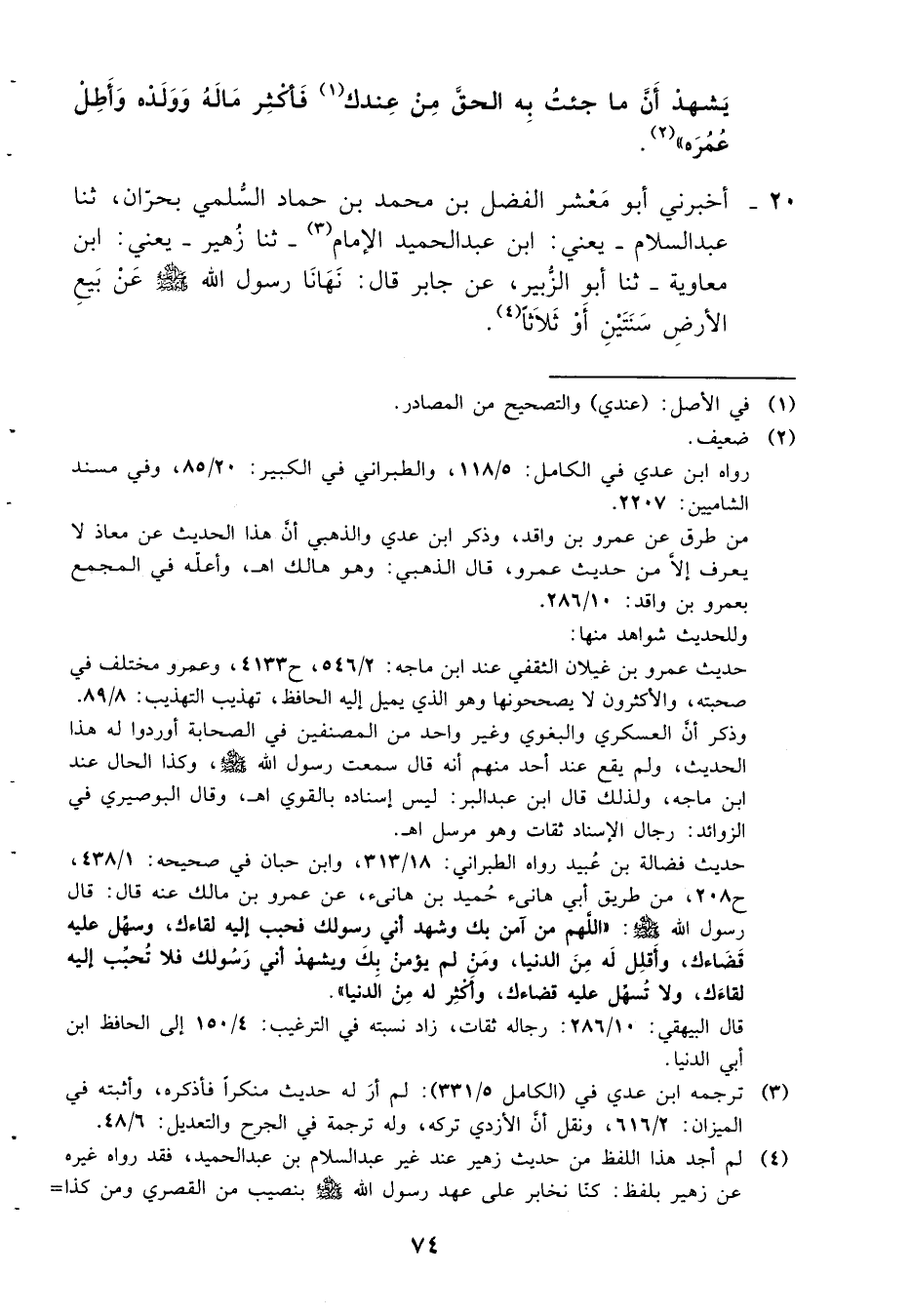 20- أخبرني أبو معشر الفضل بن محمد بن حماد السلمي بحران، ثنا عبد السلام -يعني: ابن عبد الحميد الإمام- ثنا زهير -يعني: ابن معاوية- ثنا أبو الزبير، عن جابر قال: نهانا رسول الله صلى الله عليه وسلم عن بيع الأرض سنتين أو ثلاثاً.