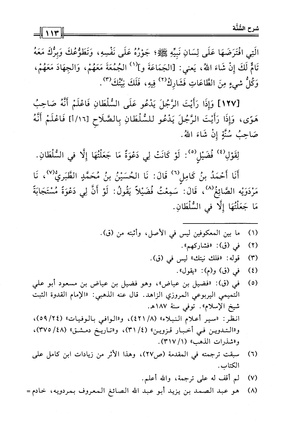 [127] وإذا رأيت الرجل يدعو على السلطان فاعلم أنه صاحب هوى، وإذا رأيت الرجل يدعو للسلطان بالصلاح فاعلم أنه صاحب سنة إن شاء الله.