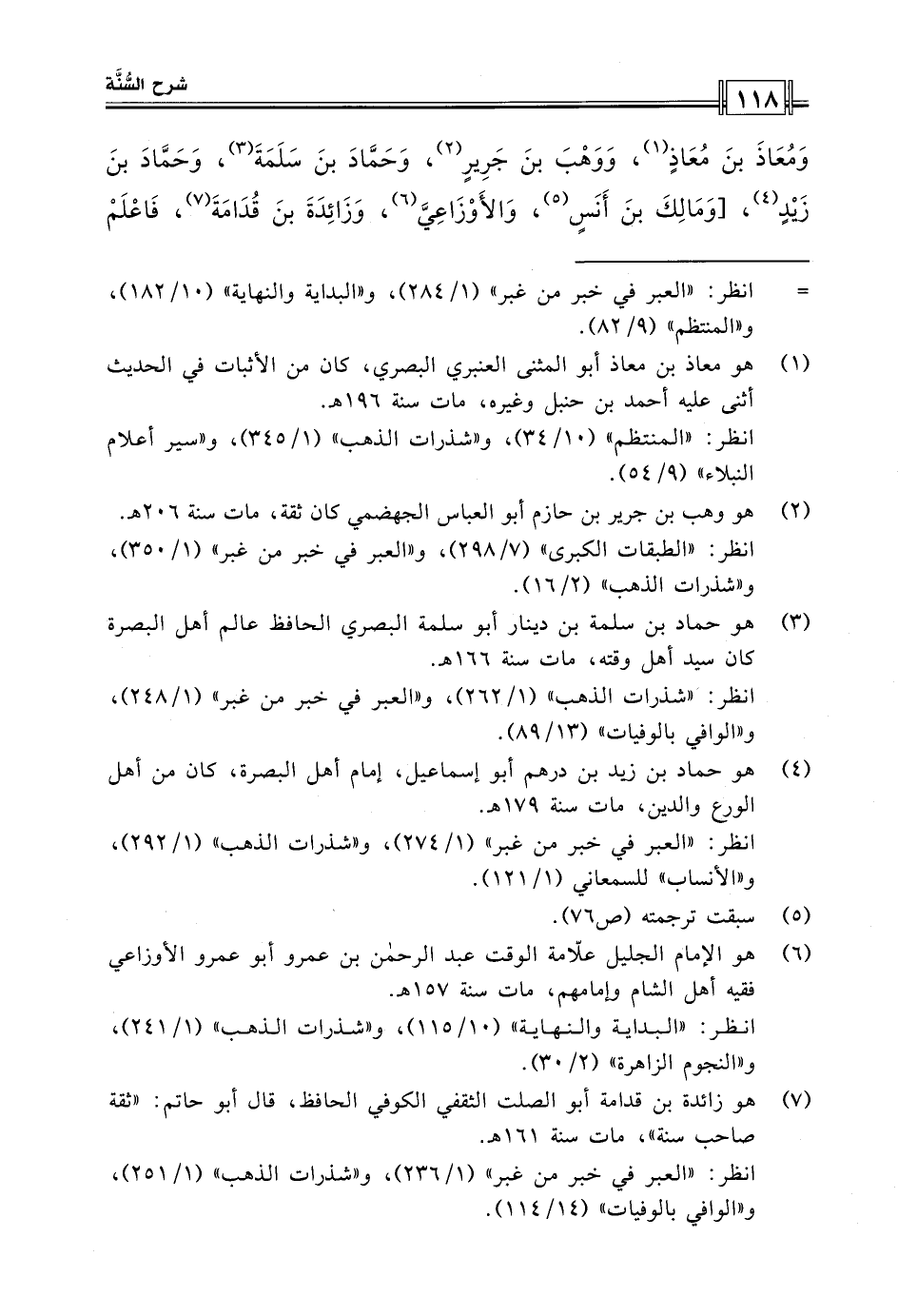 ومعاذ بن معاذ، ووهب بن جرير، وحماد بن سلمة، وحماد بن زيد، [ومالك بن أنس، والأوزاعي، وزائدة بن قدامة، فاعلم