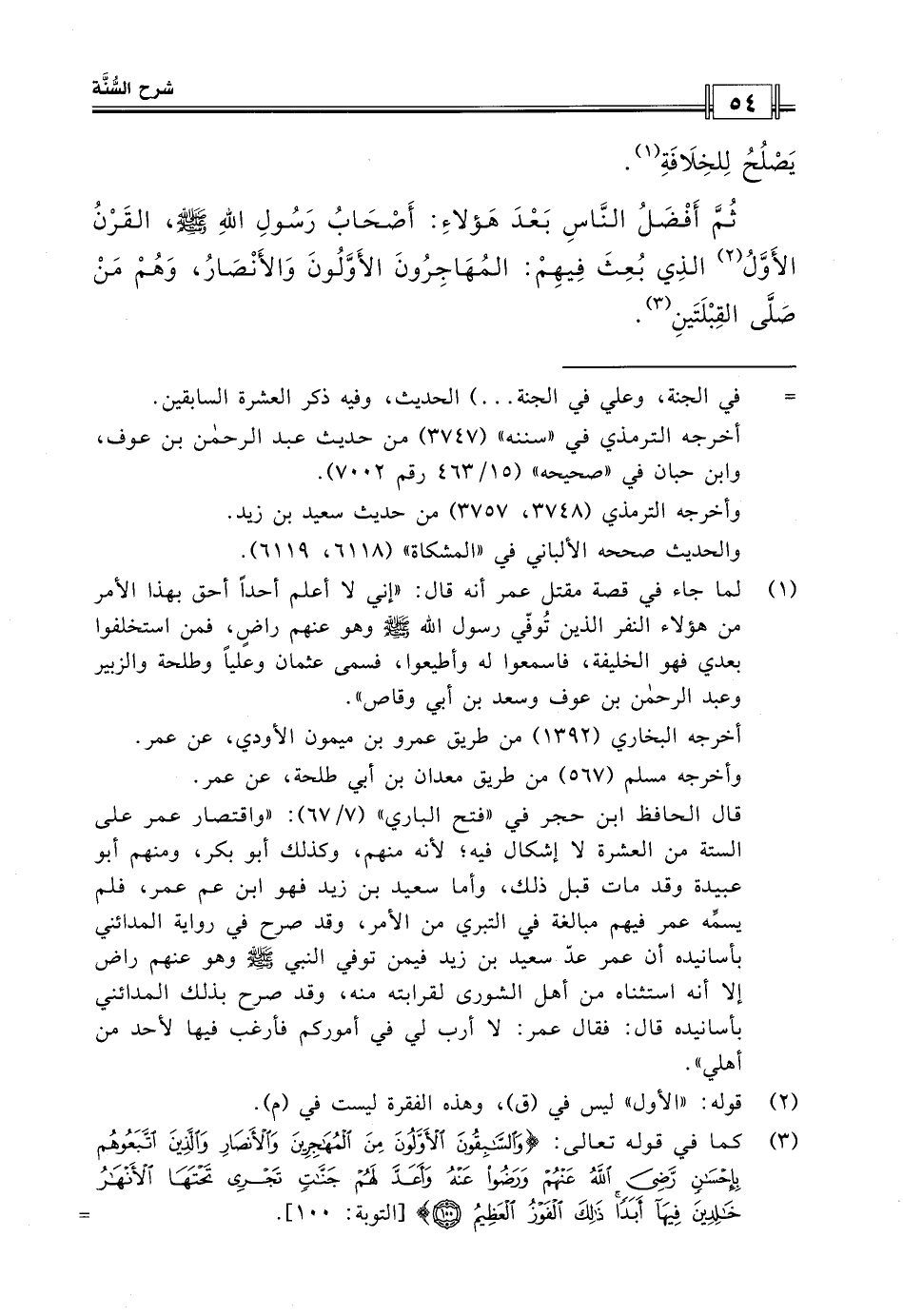 ثم أفضل الناس بعد هؤلاء: أصحاب رسول الله صلى الله عليه وسلم، القرن الأول الذي بعث فيهم: المهاجرون الأولون والأنصار، وهم من صلى القبلتين.