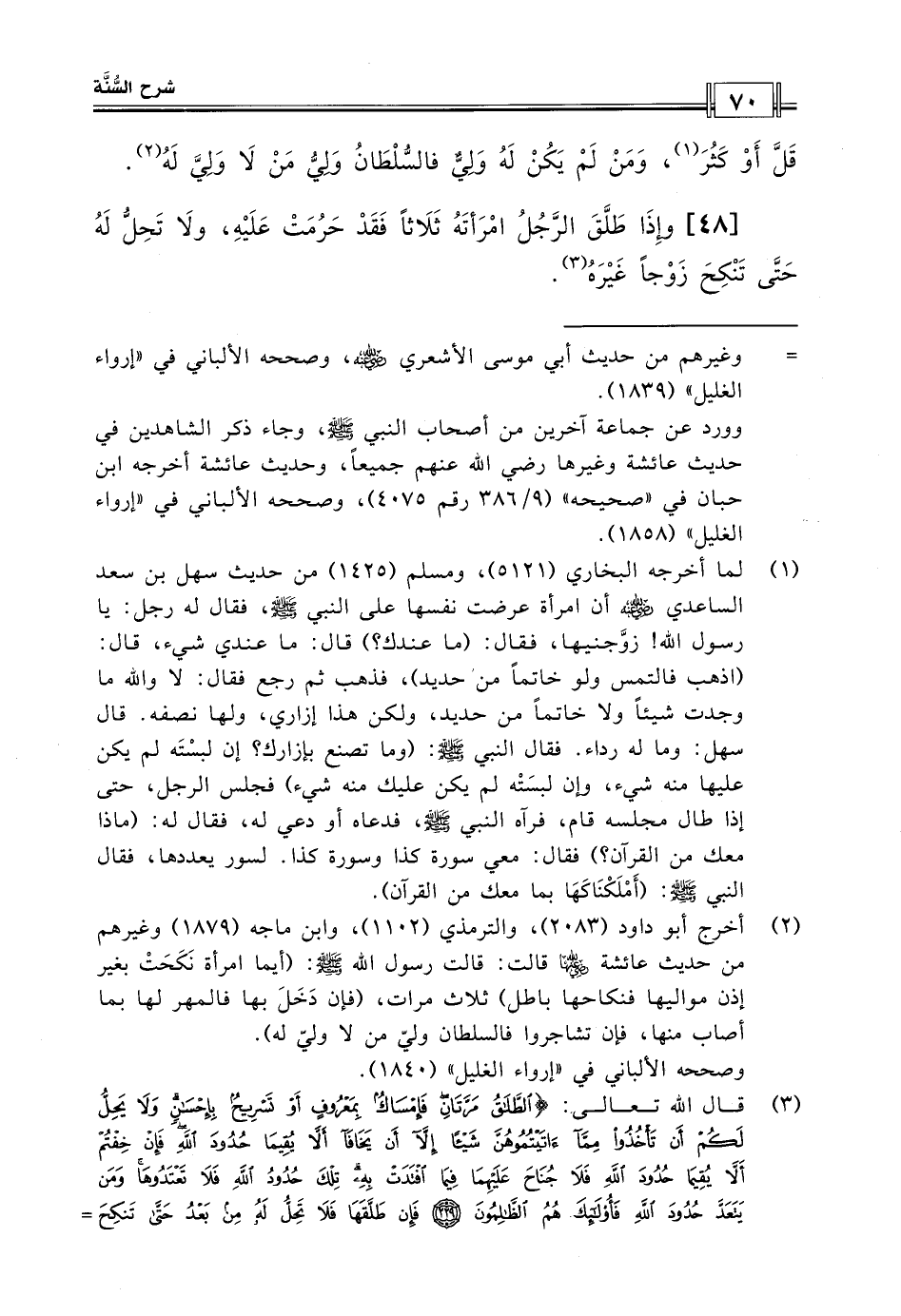 [48] وإذا طلق الرجل امرأته ثلاثا فقد حرمت عليه، ولا تحل له حتى تنكح زوجا غيره.