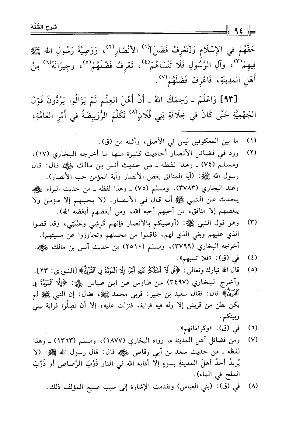 حقهم في الإسلام و [تعرف فضل] الأنصار، ووصية رسول الله صلى الله عليه وسلم فيهم، وآل الرسول فلا تنساهم، تعرف فضلهم، وجيرانه من أهل المدينة، فاعرف فضلهم.