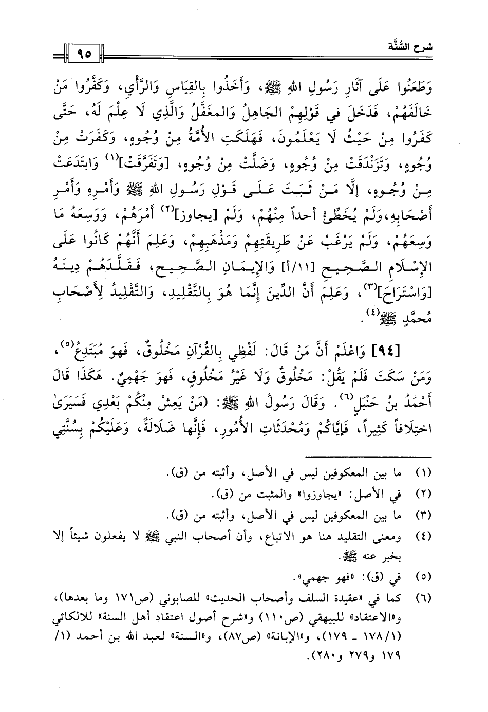 [94] واعلم أن من قال: لفظي بالقرآن مخلوق، فهو مبتدع، ومن سكت فلم يقل: مخلوق ولا غير مخلوق، فهو جهمي.
