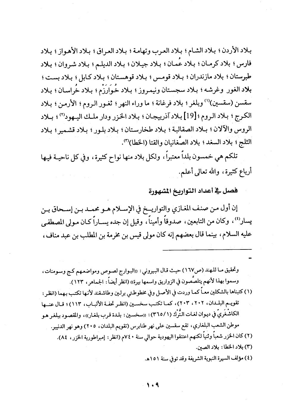 بلاد الأردن؛ بلاد الشام؛ بلاد العرب وتهامة؛ بلاد العراق؛ بلاد الأهواز؛ بلاد فارس؛ بلاد كرمان؛ بلاد عمان؛ بلاد جيلان؛ بلاد الديلم؛ بلاد شروان؛ بلاد طبرستان؛ بلاد مازندران؛ بلاد قومس؛ بلاد قوهستان؛ بلاد كابل؛ بلاد بست؛ بلاد الغور وغرشه؛ بلاد سجستان ونيمروز؛ بلاد خوارزم؛ بلاد خراسان؛ بلاد سقسن (سقسين) «1» وبلغر؛ بلاد فرغانة؛ ما وراء النهر؛ ثغور الروم؛ الأرمن؛ بلاد الكرج؛ بلاد الروم؛ [19] بلاد آذربيجان؛ بلاد الخزر ودار ملك اليهود «2» ؛ بلاد الروس والآلان؛ بلاد الصقالبة؛ بلاد طخارستان؛ بلاد بلور؛ بلاد قشمير؛ بلاد الثلج؛ بلاد السغد؛ بلاد الصّغانيان والقتا (الخطا) «3» .