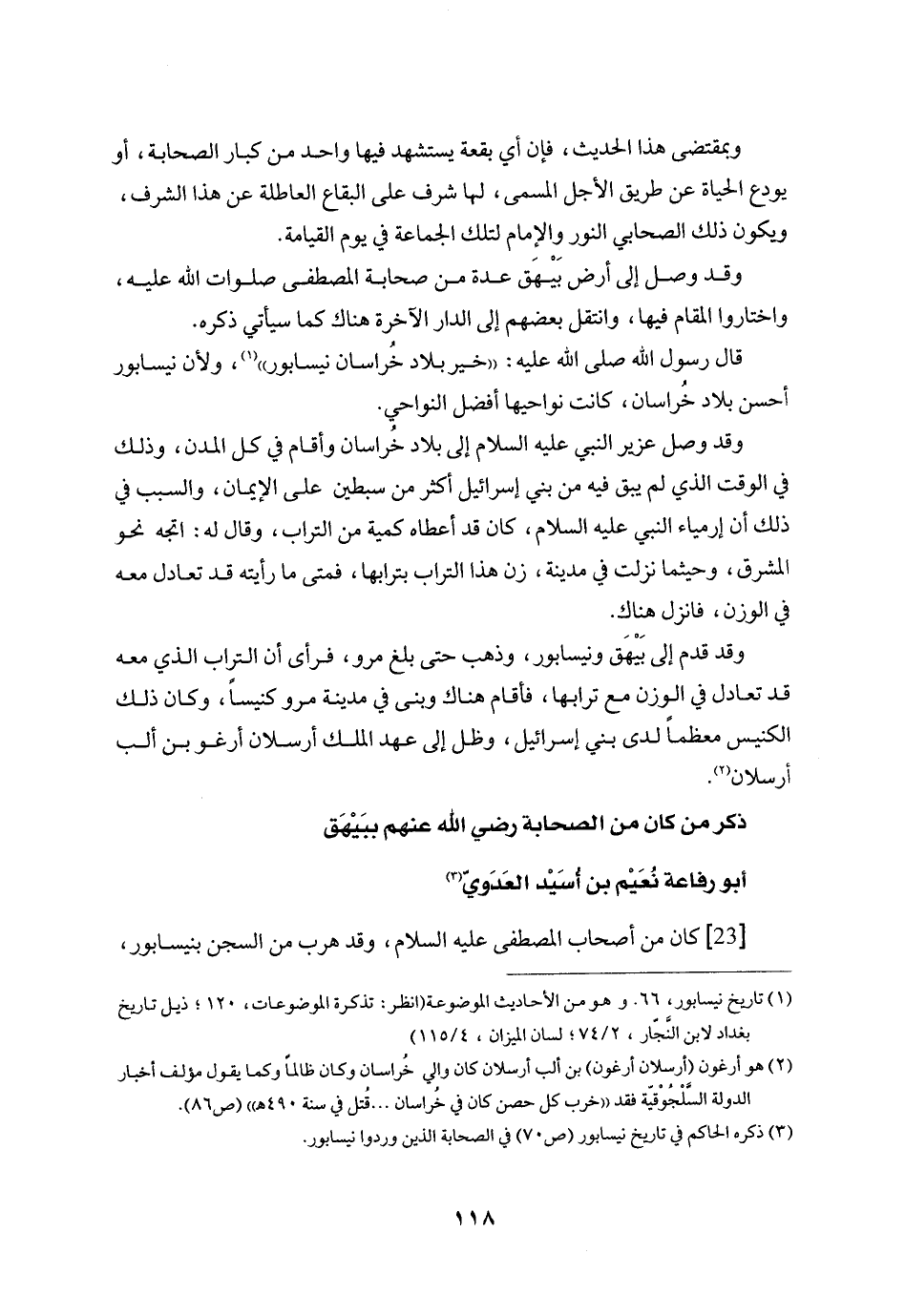 وقد وصل إلى أرض بيهق عدة من صحابة المصطفى صلوات الله عليه، واختاروا المقام فيها، وانتقل بعضهم إلى الدار الآخرة هناك كما سيأتي ذكره.