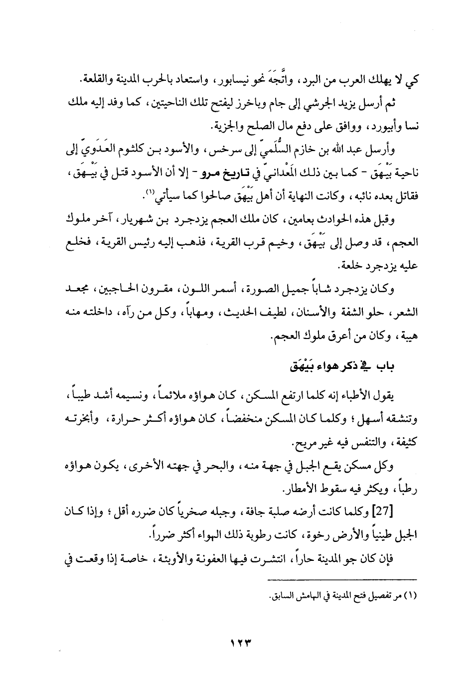 كي لا يهلك العرب من البرد، واتّجه نحو نيسابور، واستعاد بالحرب المدينة والقلعة.