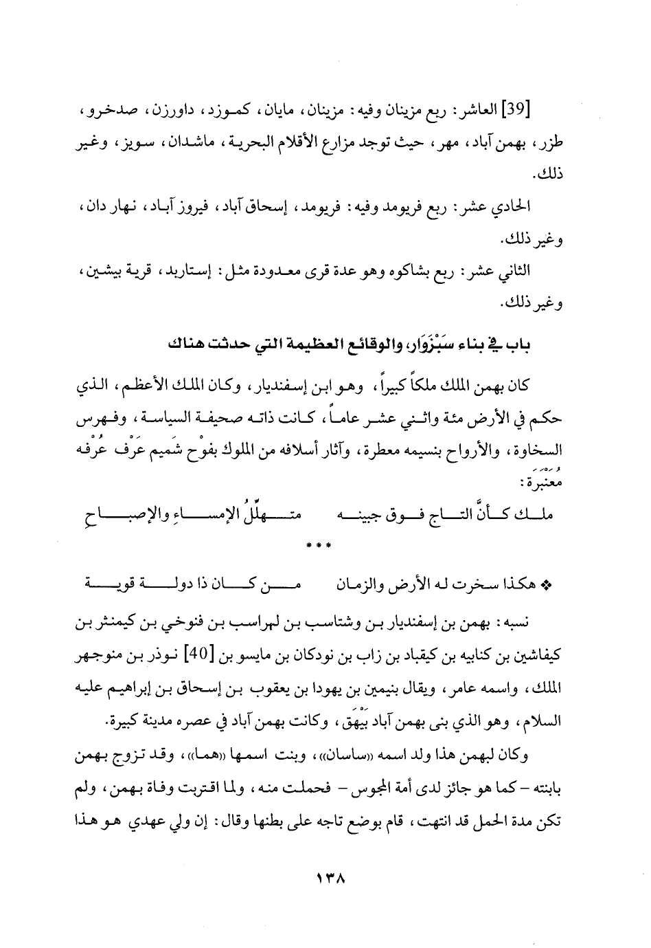 باب في بناء سبزوار، والوقائع العظيمة التي حدثت هناك