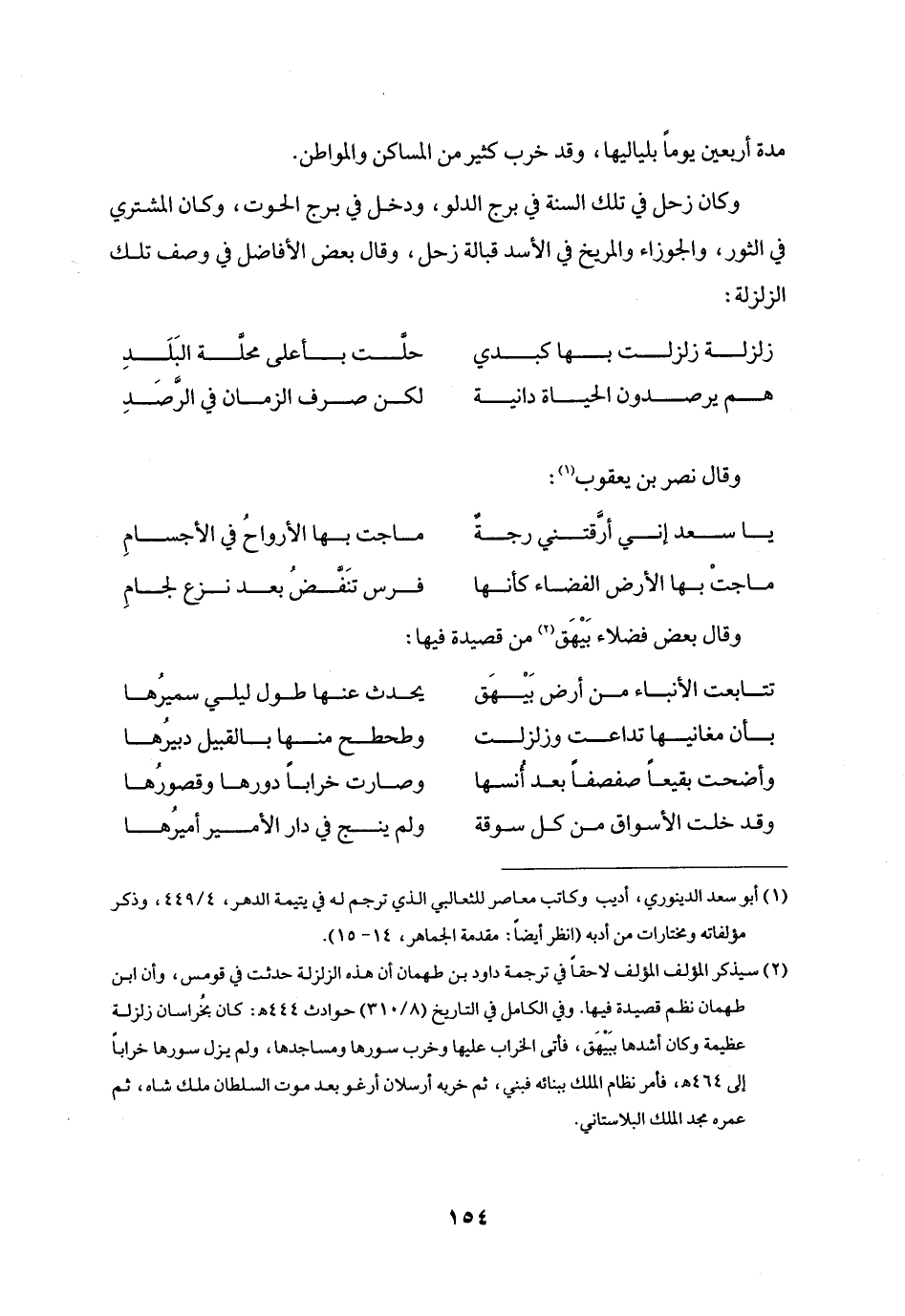 وكان زحل في تلك السنة في برج الدلو، ودخل في برج الحوت، وكان المشتري في الثور، والجوزاء والمريخ في الأسد قبالة زحل، وقال بعض الأفاضل في وصف تلك الزلزلة: