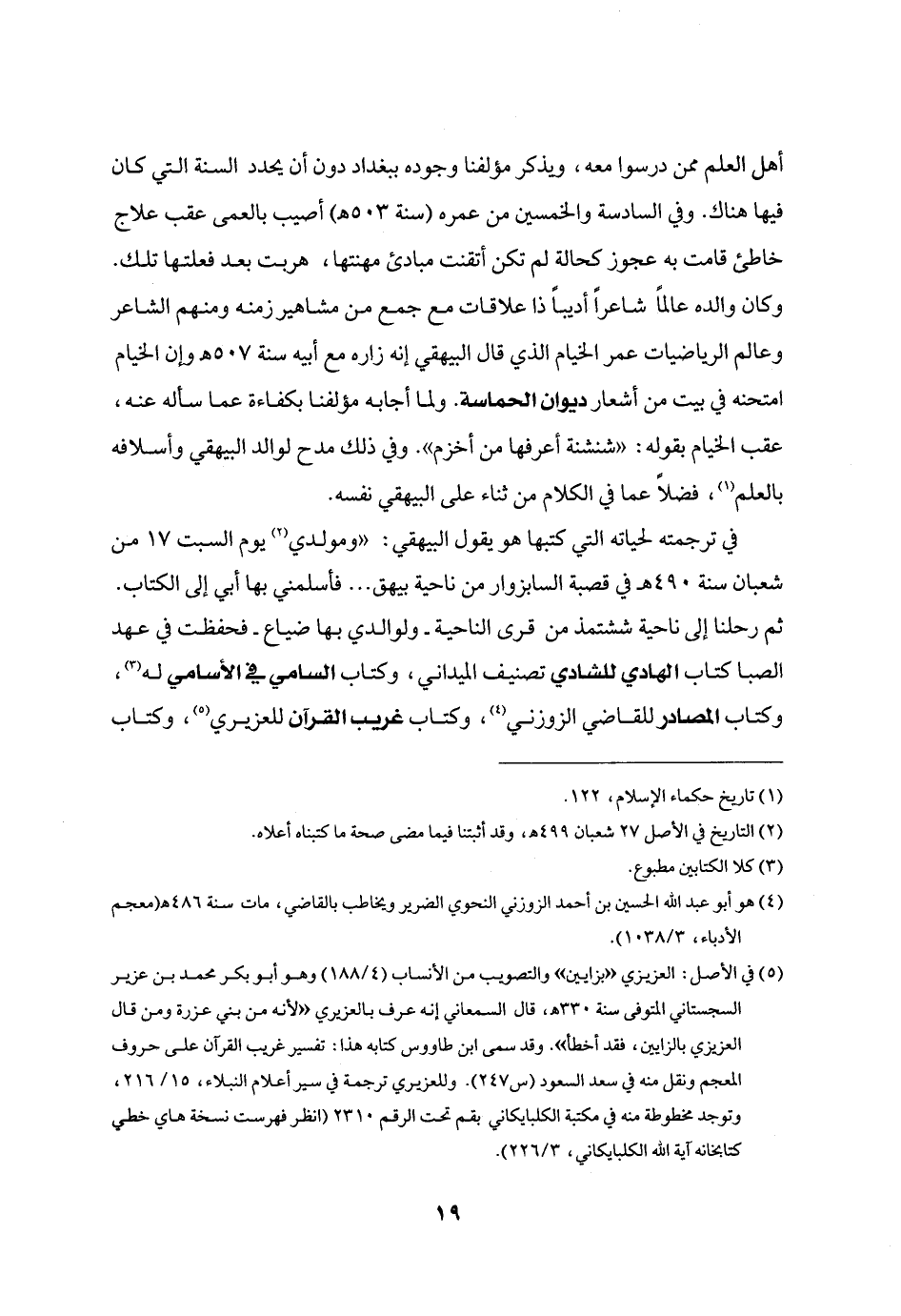 في ترجمته لحياته التي كتبها هو يقول البيهقي: «ومولدي «2» يوم السبت 17 من شعبان سنة 490 هـ في قصبة السابزوار من ناحية بيهق ... فأسلمني بها أبي إلى الكتاب.