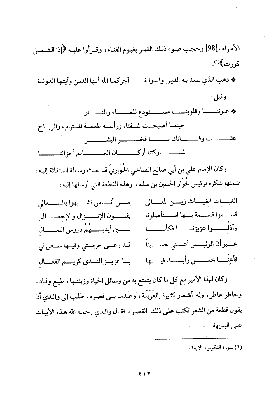 الأمراء، [98] وحجب ضوء ذلك القمر بغيوم الفناء، وقرأوا عليه إِذَا الشَّمْسُ كُوِّرَتْ
