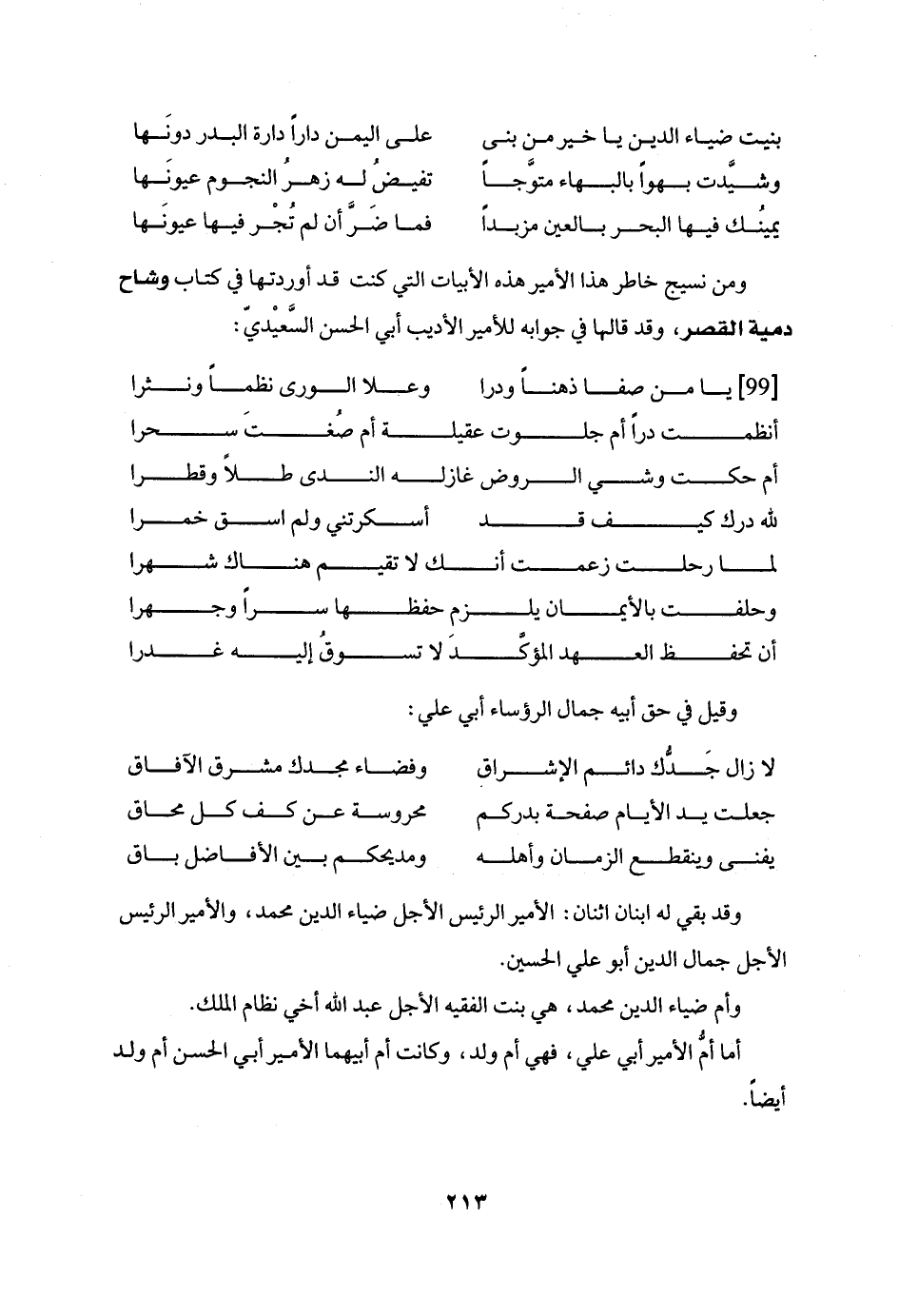 ومن نسيج خاطر هذا الأمير هذه الأبيات التي كنت قد أوردتها في كتاب وشاح دمية القصر، وقد قالها في جوابه للأمير الأديب أبي الحسن السّعيديّ: